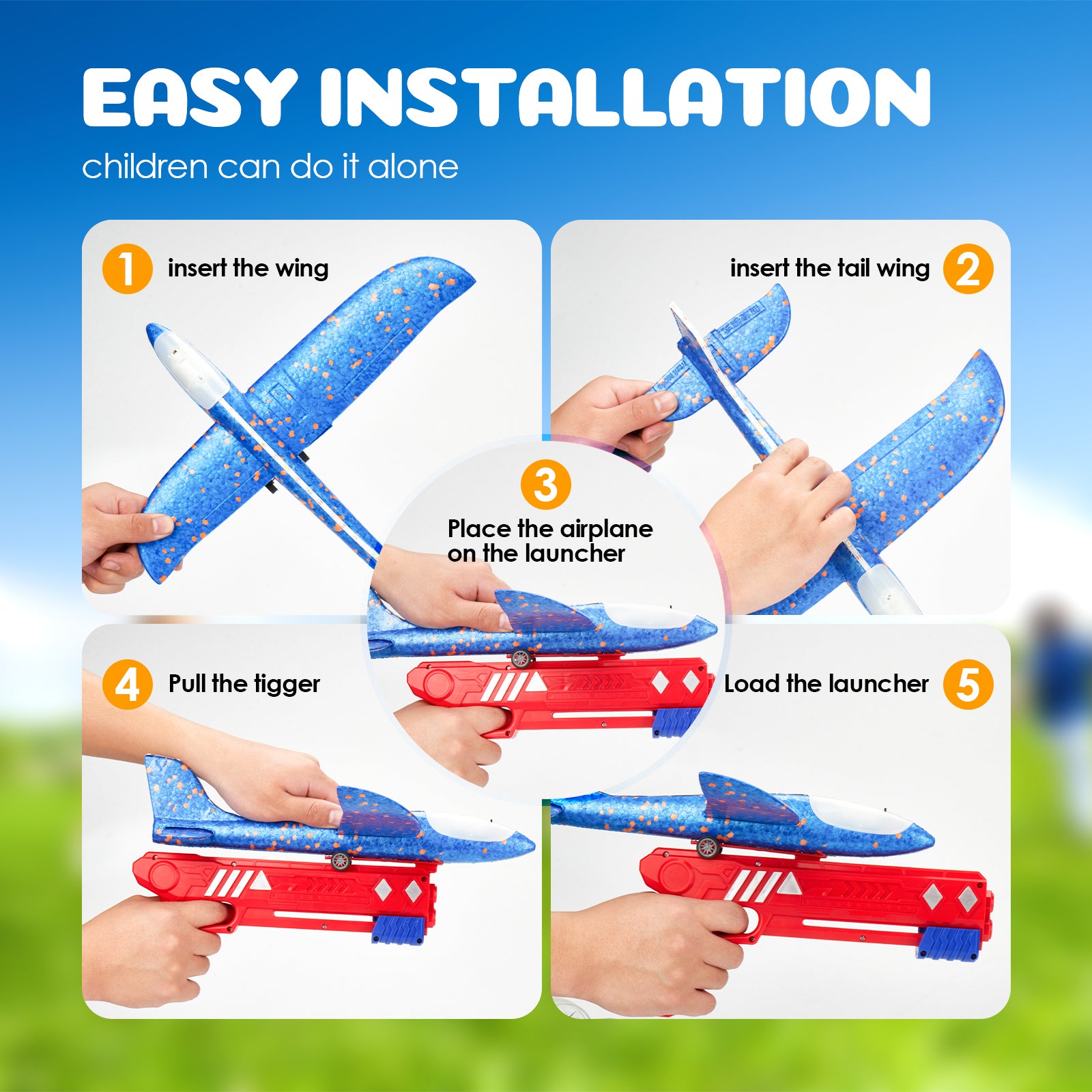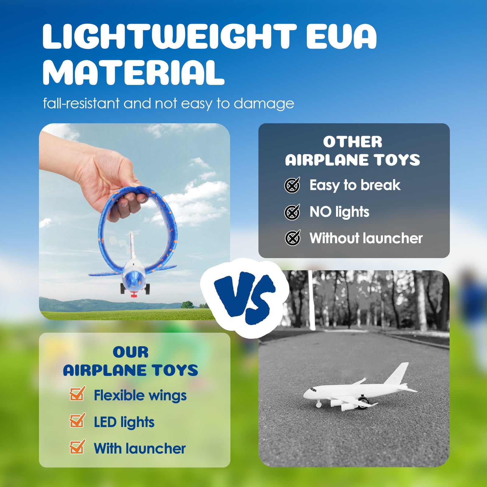 2 Pack Airplane Toys With Launcher, 2 Flight Modes LED Foam Glider Catapult Plane Toy, Outdoor Flying Toy For Kids, Airplane Birthday Party Gifts For 3 4 5 6 7 8 9 Years Old Boys Girls