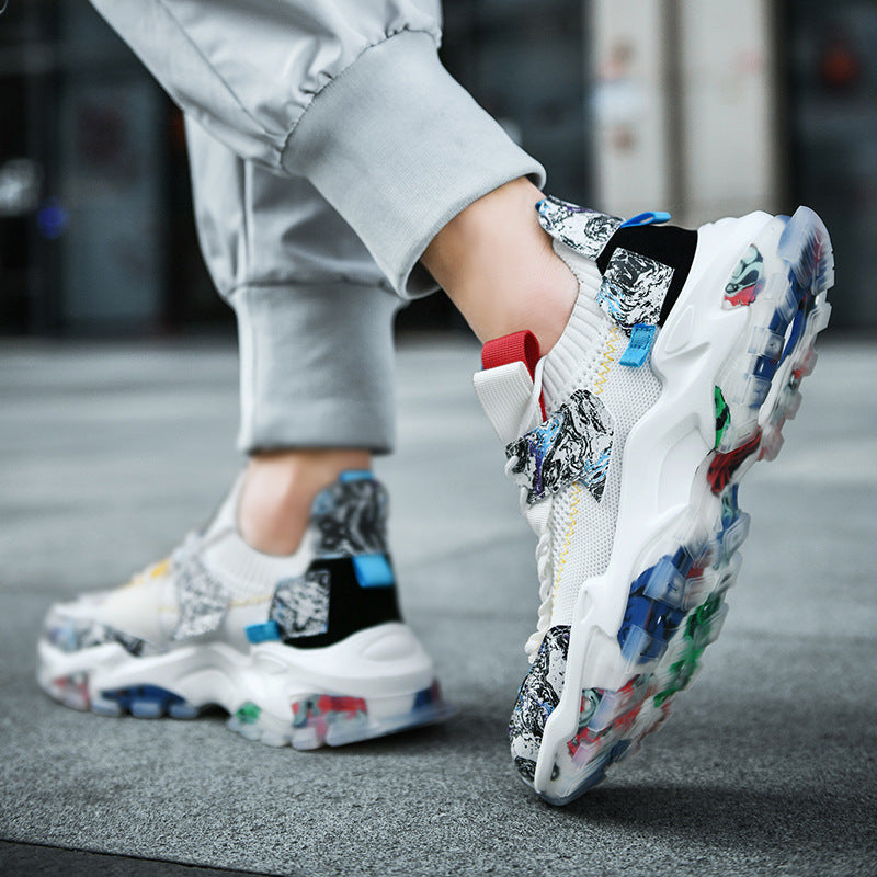 Breathable Fly Woven Mesh Shoes Men's Daddy Shoes Popcorn Running Sneakers