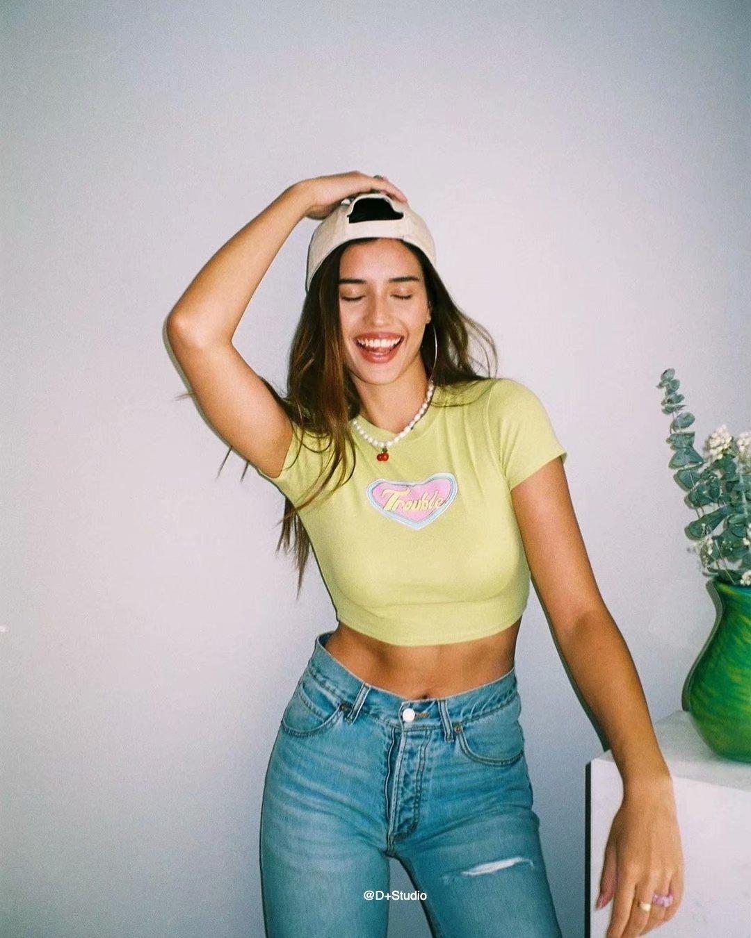 European And American Spicy Girls Retro Printed Slim Fit Short Sleeves