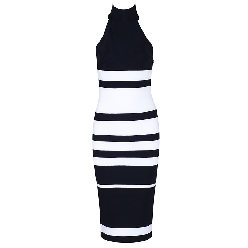 Hanging neck round neck striped contrast color knitted dress