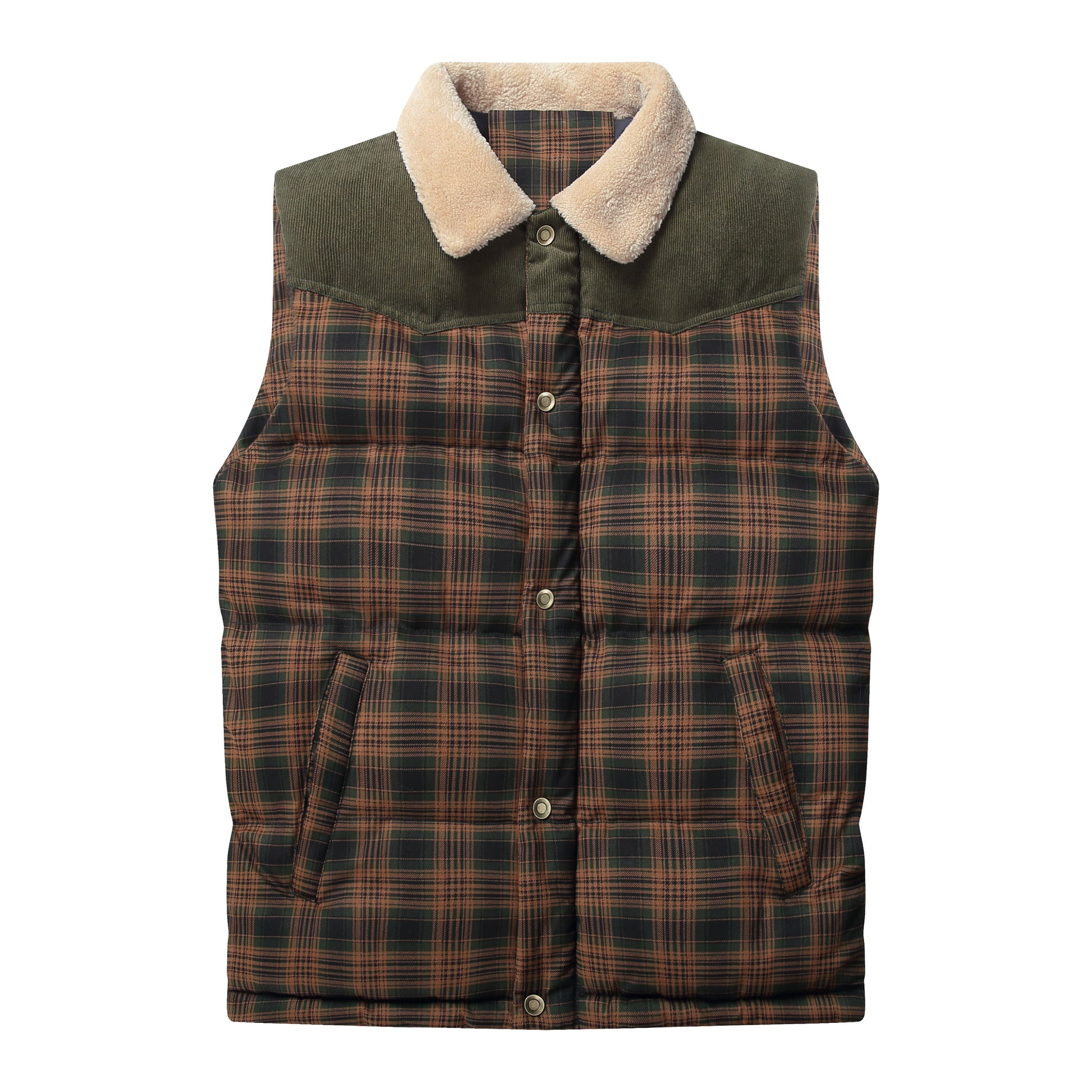 Men Neck Collar Warm Plaid Vest