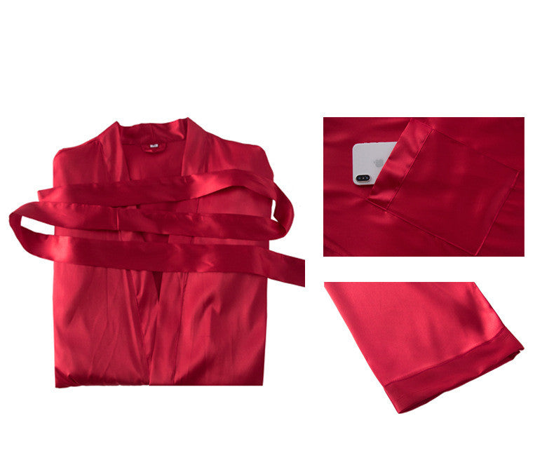 Men's Home Wear Mid-length Cardigan Simulation Silk Nightgown