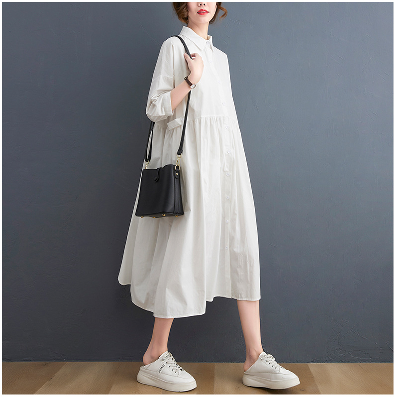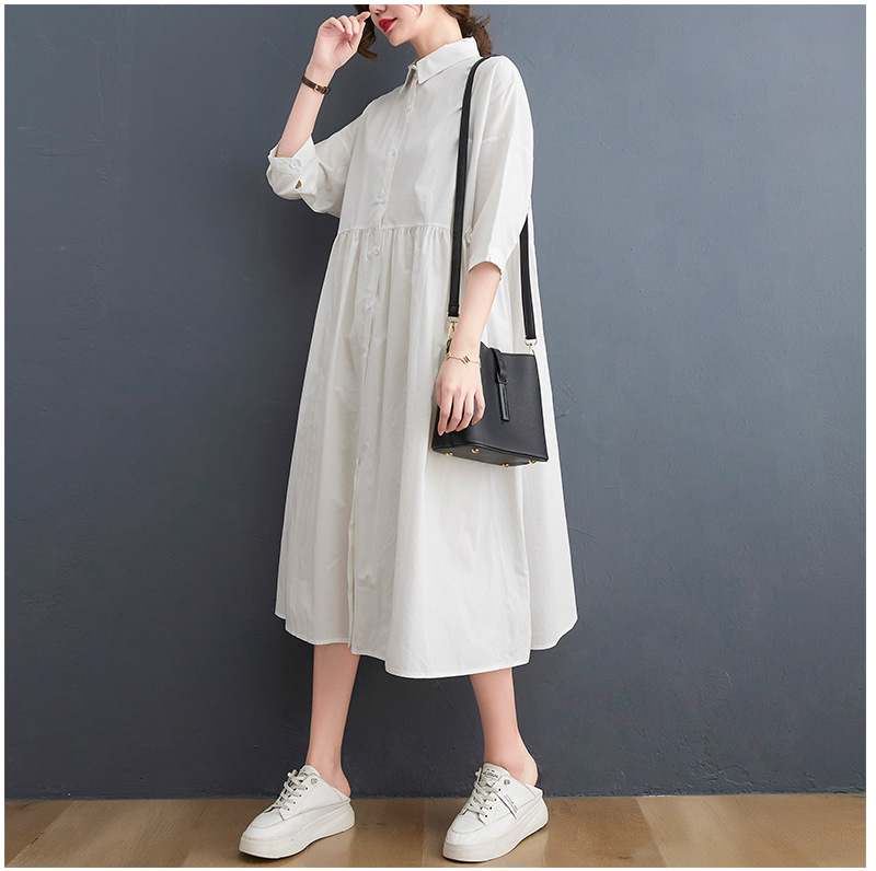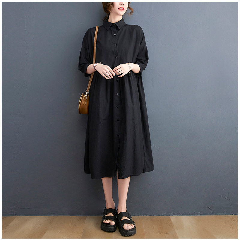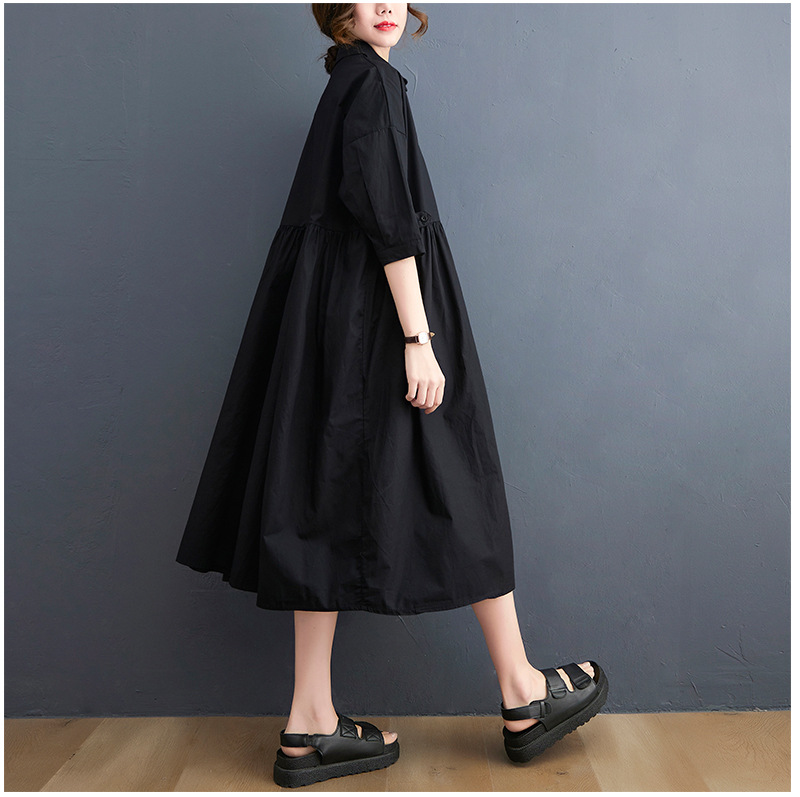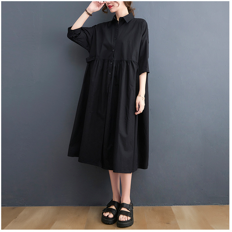 New Solid Color Casual Loose Large Size Short Sleeve Dress Women