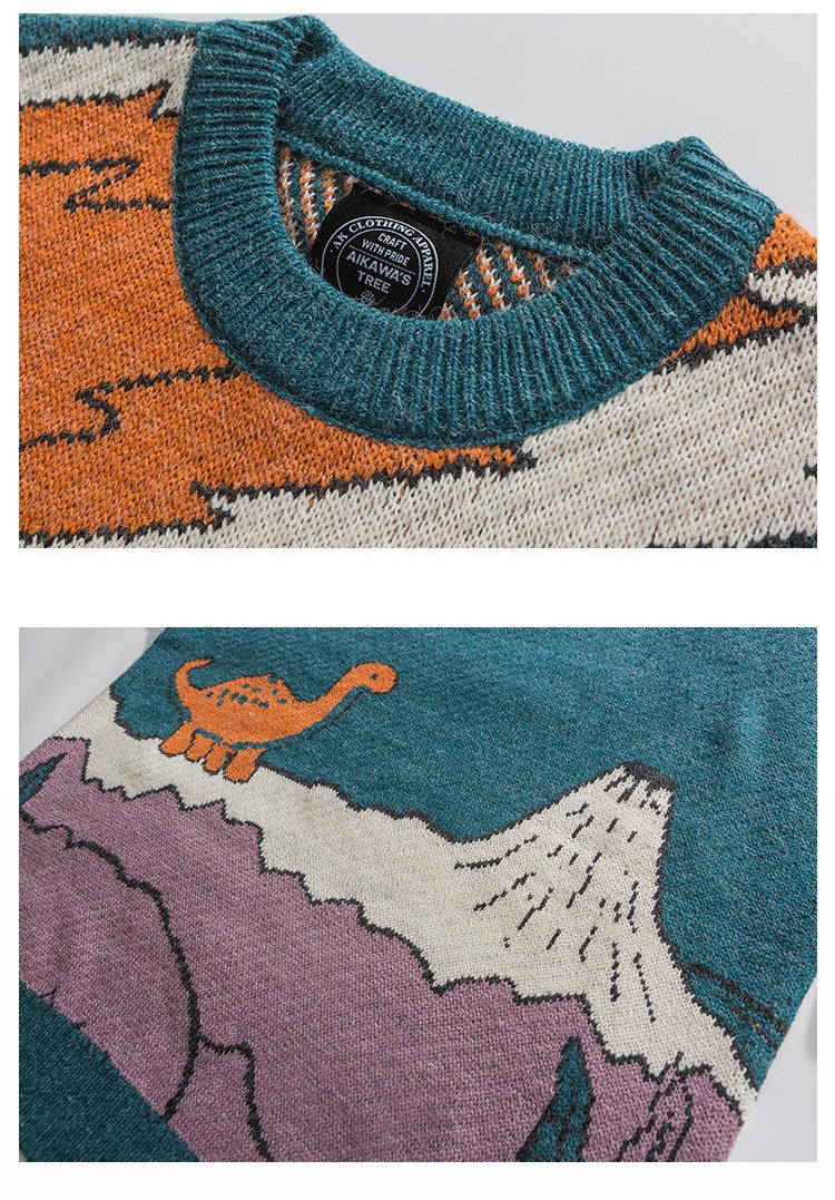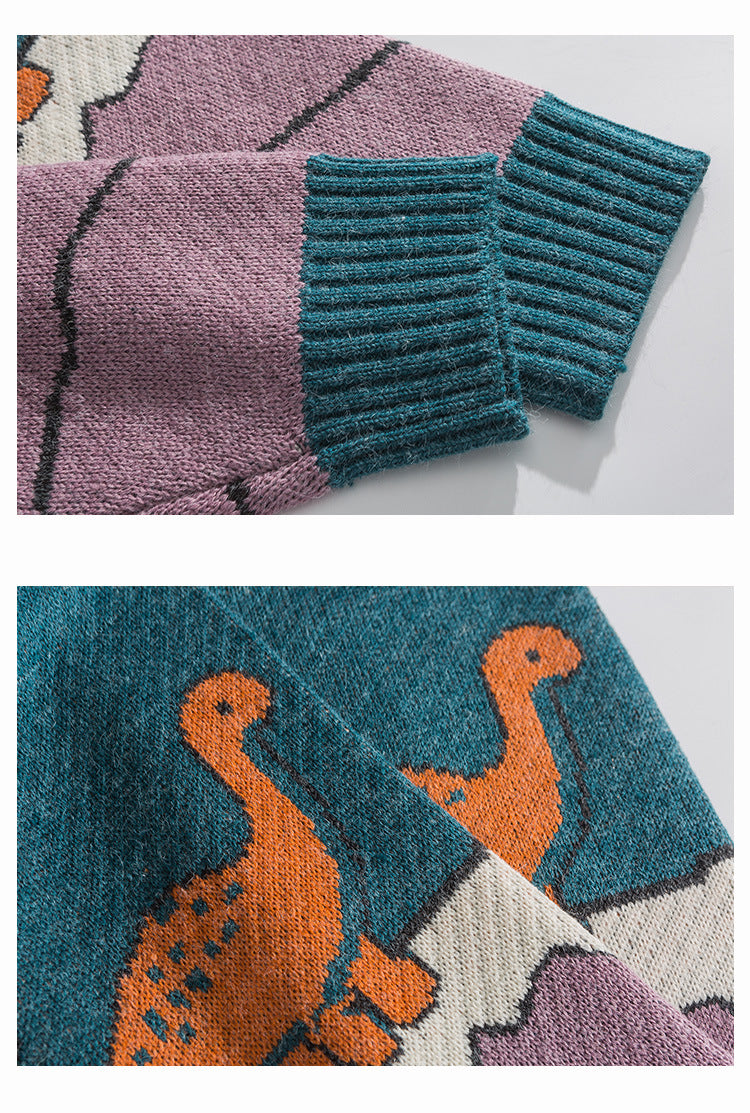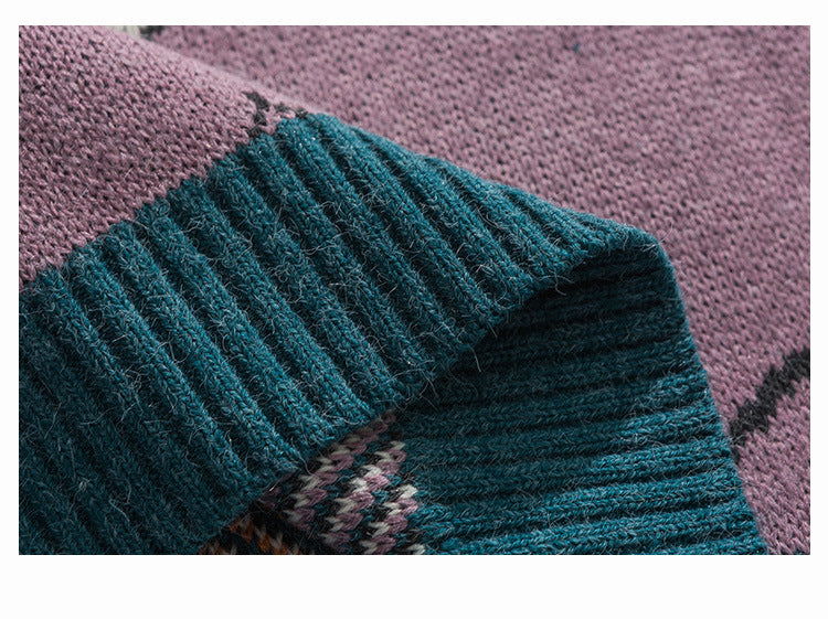 Patterned Jacquard Round Neck Sweater With Loose Fit