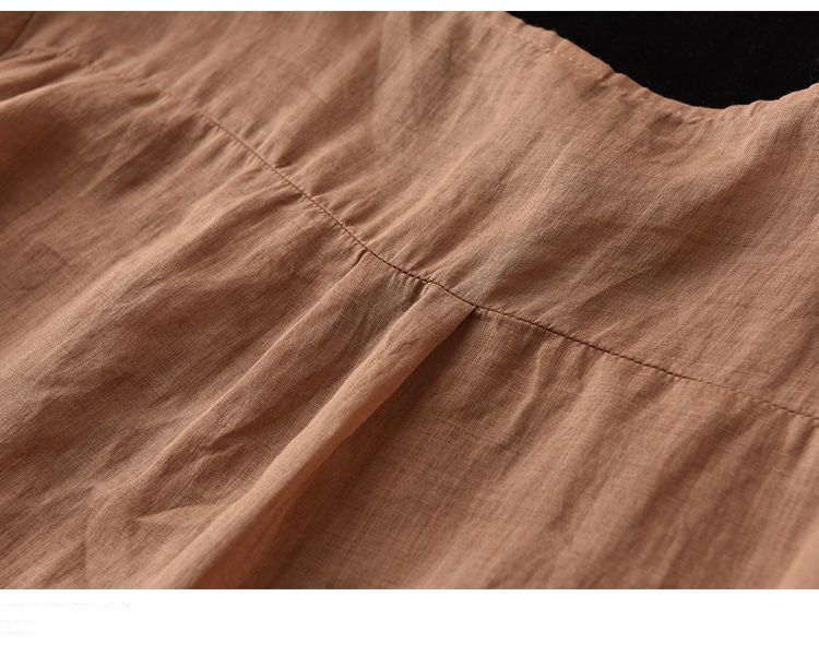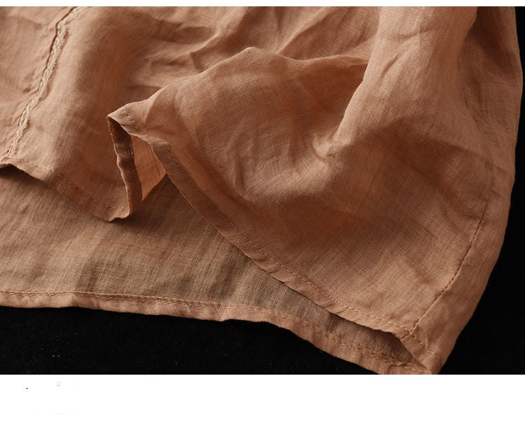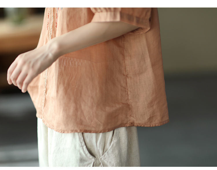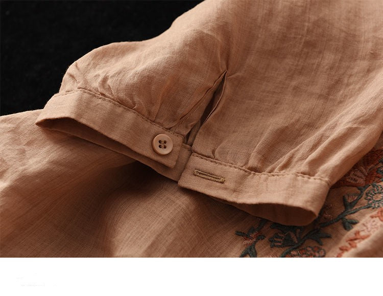 Retro Art Heavy Industry Embroidered Cotton And Hemp Top For Women