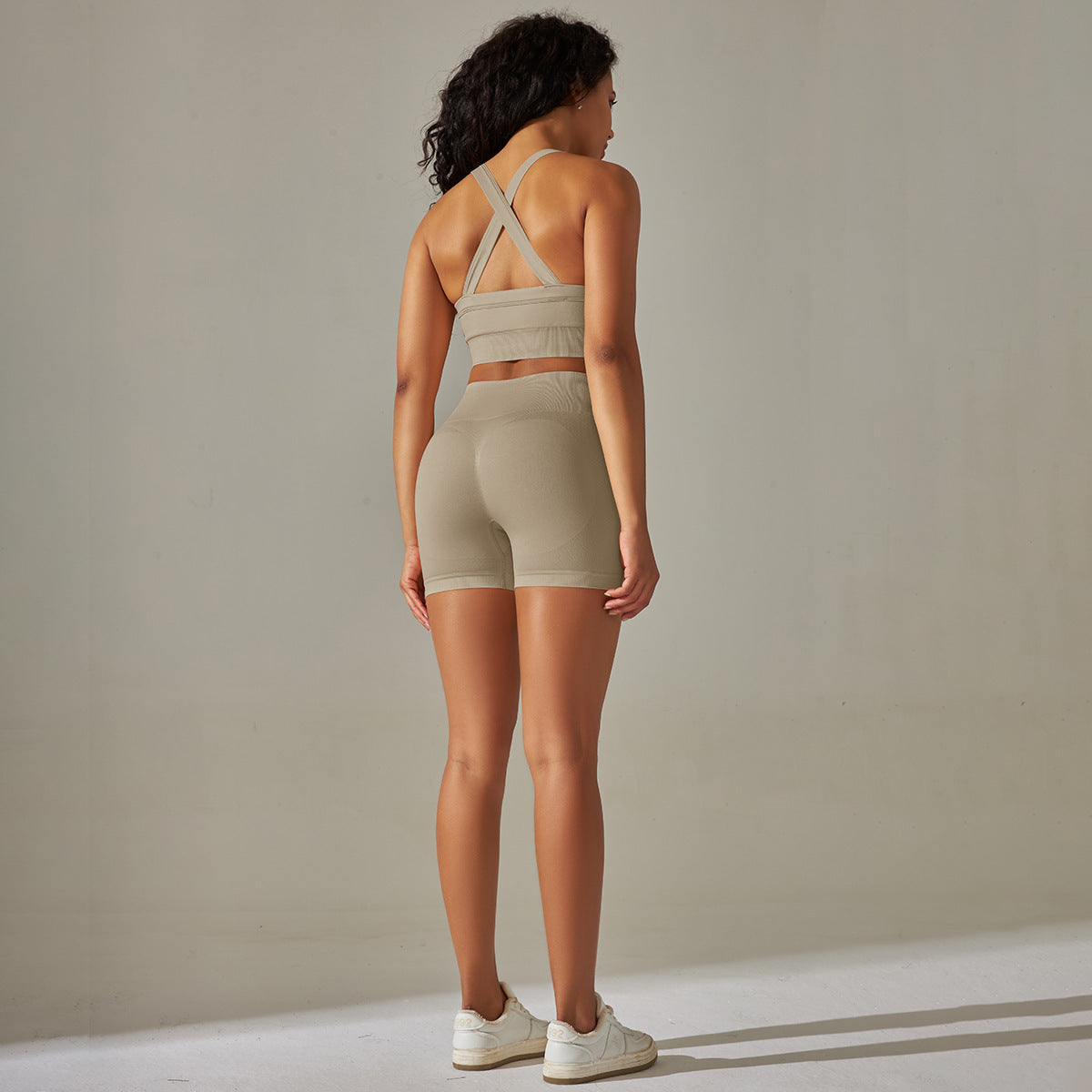 Seamless Solid Color Cross Beauty Back Exercise Bra Yoga Clothes Suit