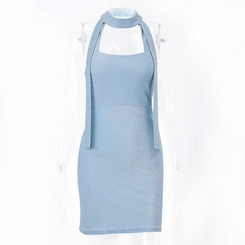 Sexy Backless Ribbon Backless Shiny Lady Dress