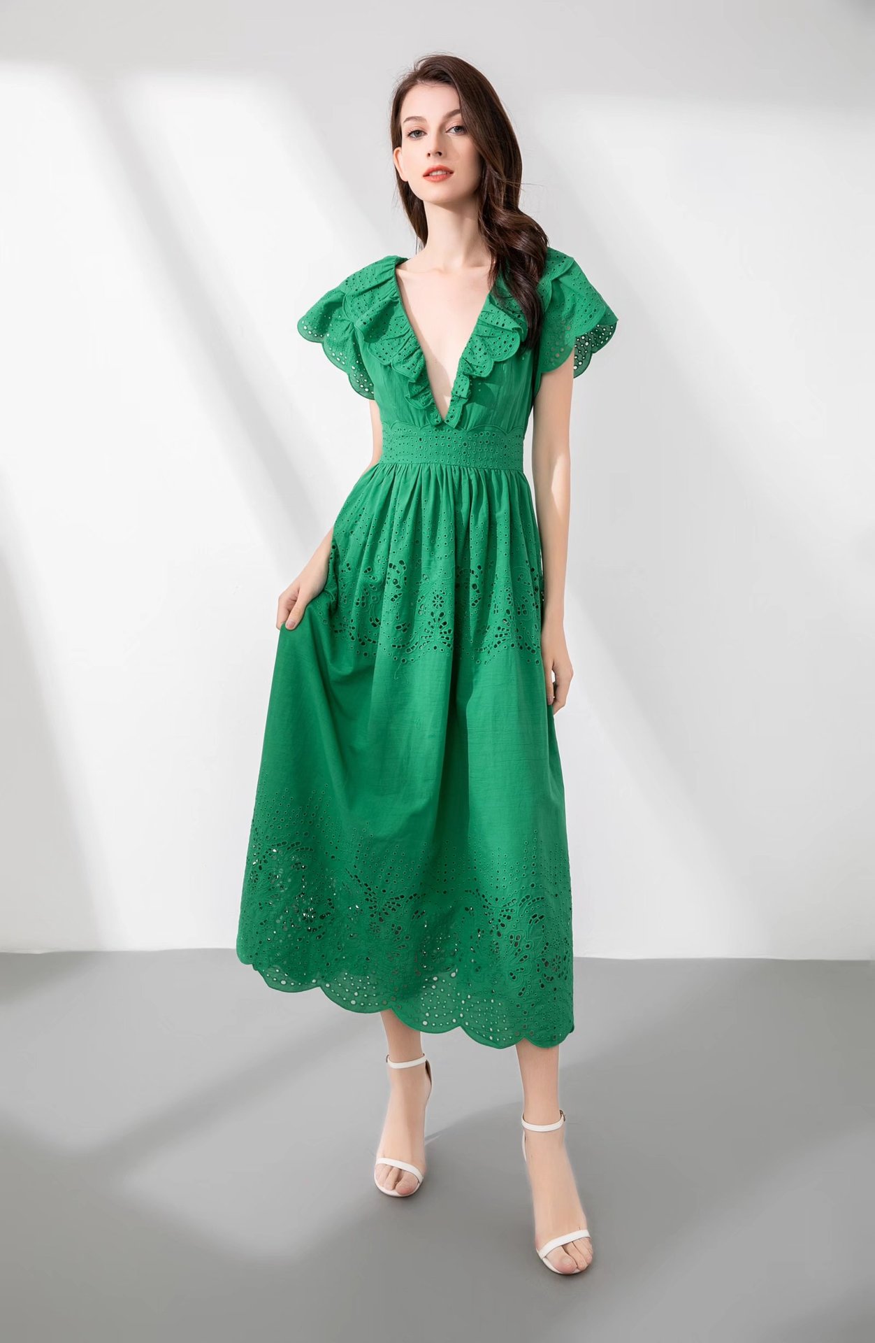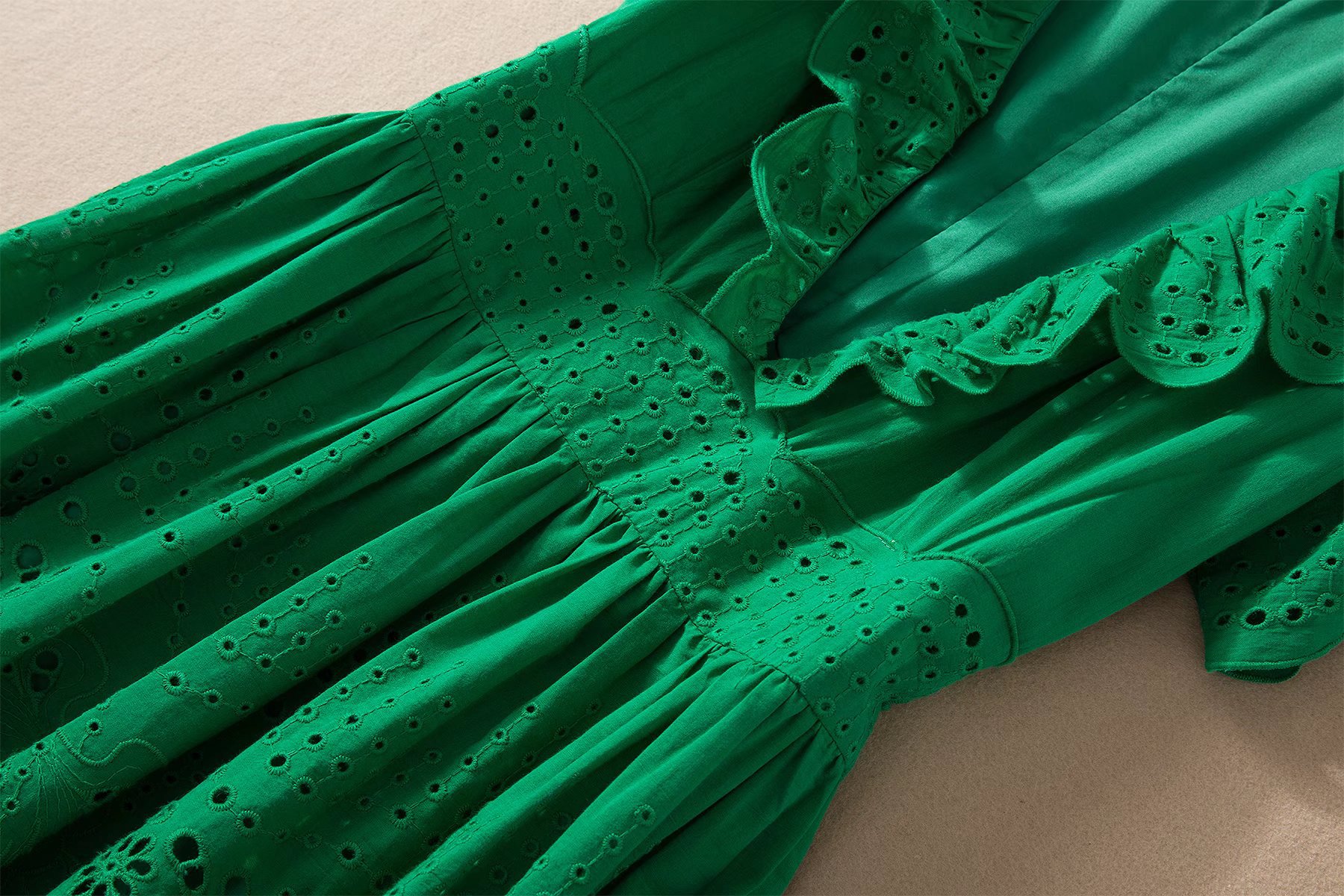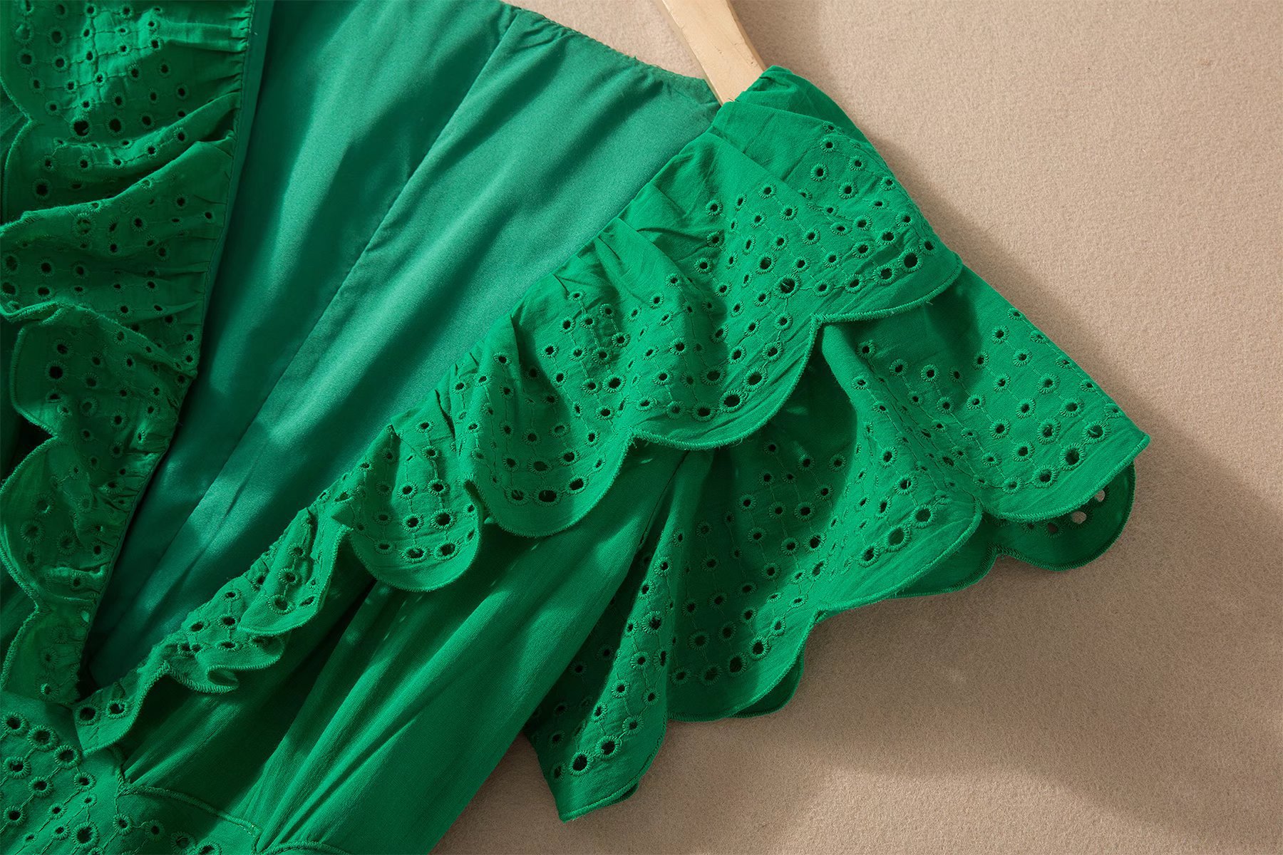 V-neck Stitching Cutout Embroidered Waist-length Dress