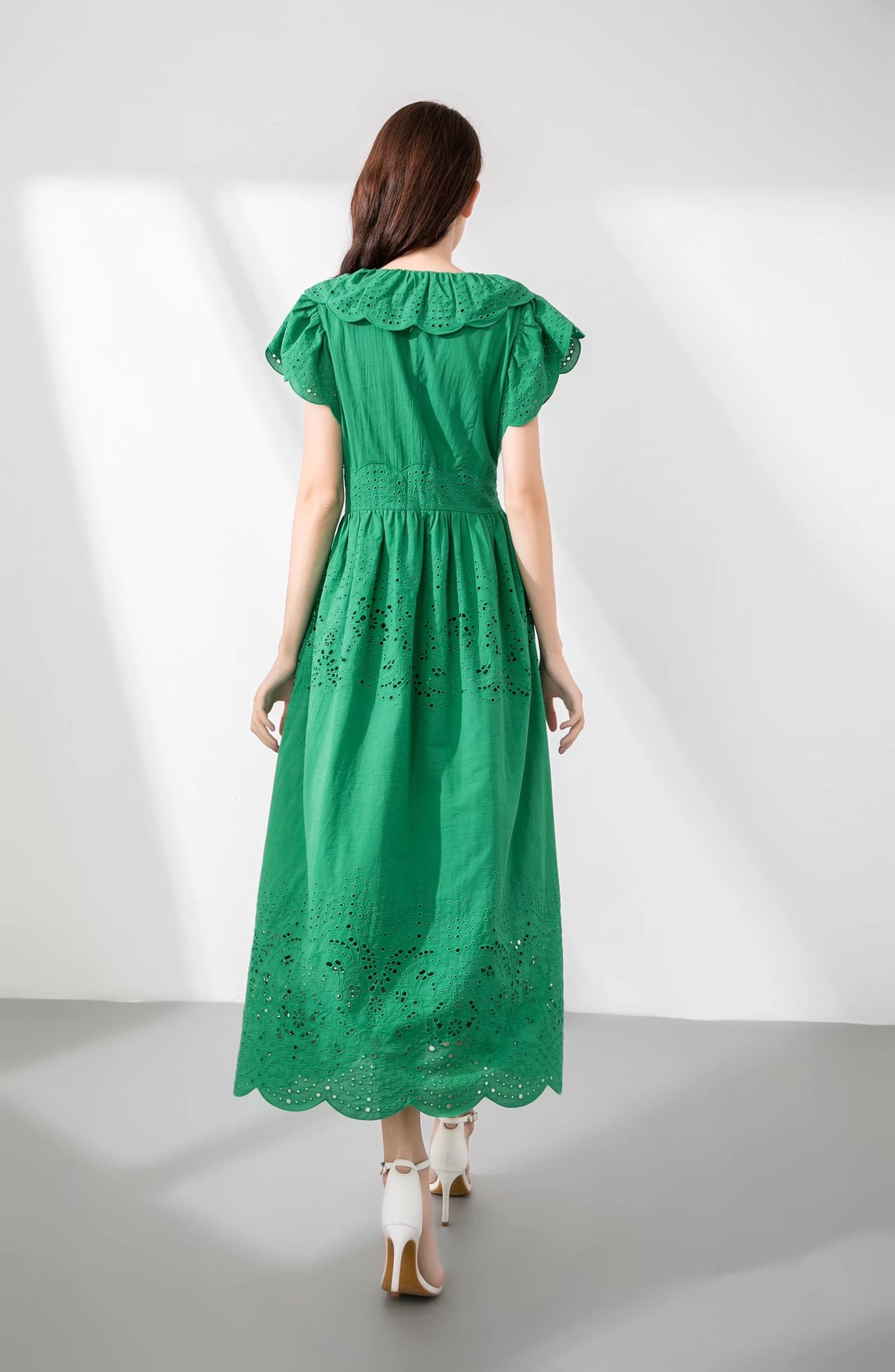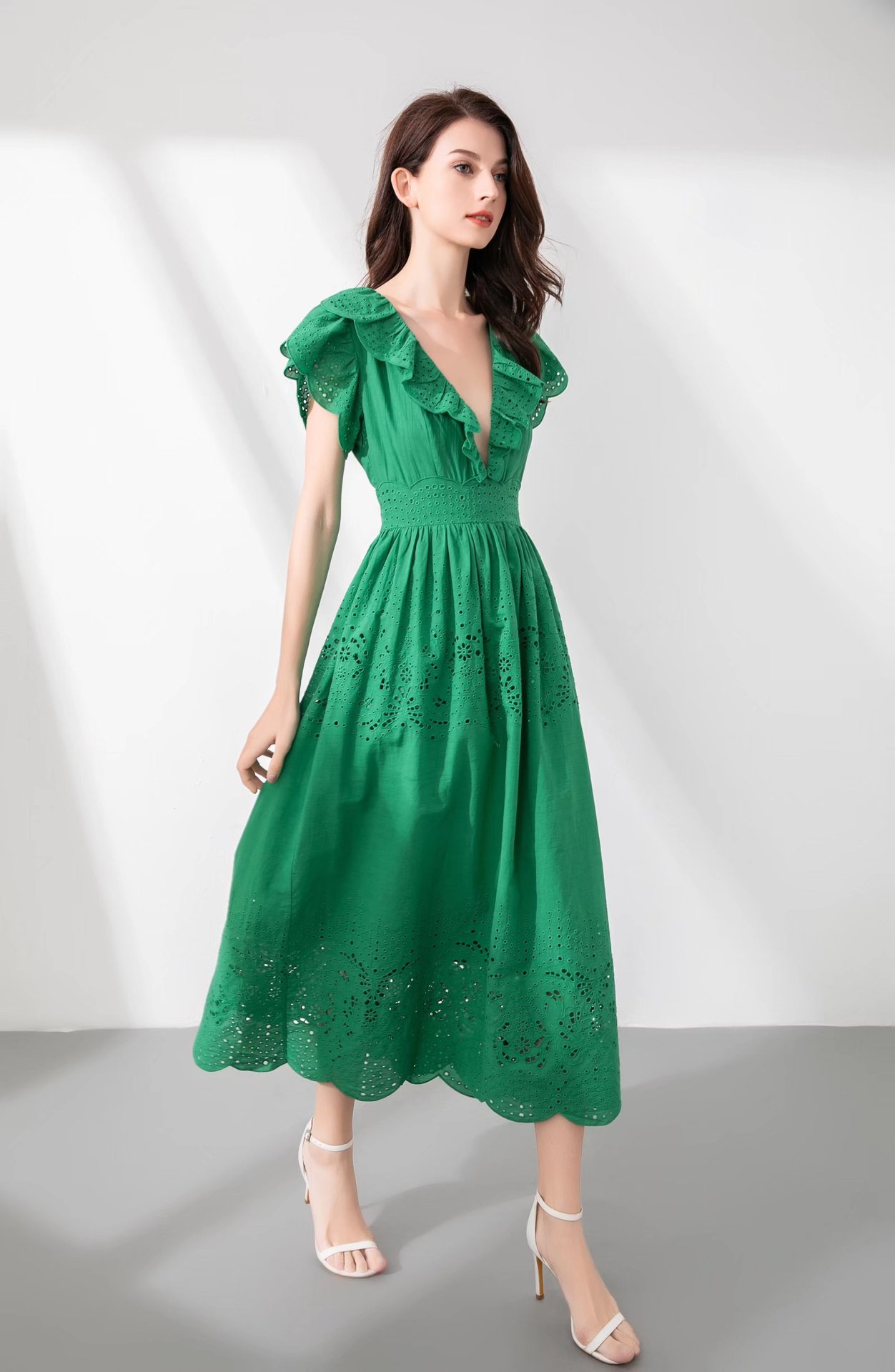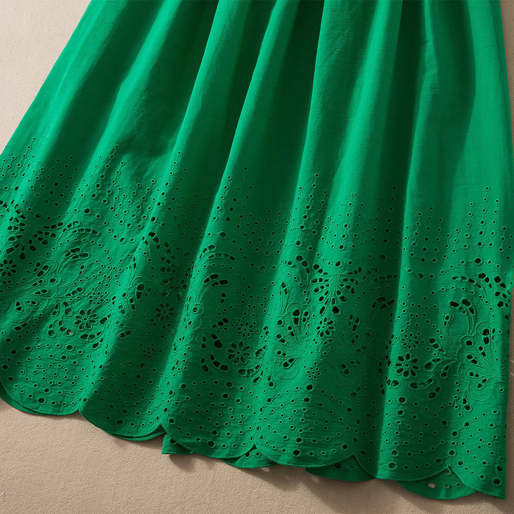 V-neck Stitching Cutout Embroidered Waist-length Dress