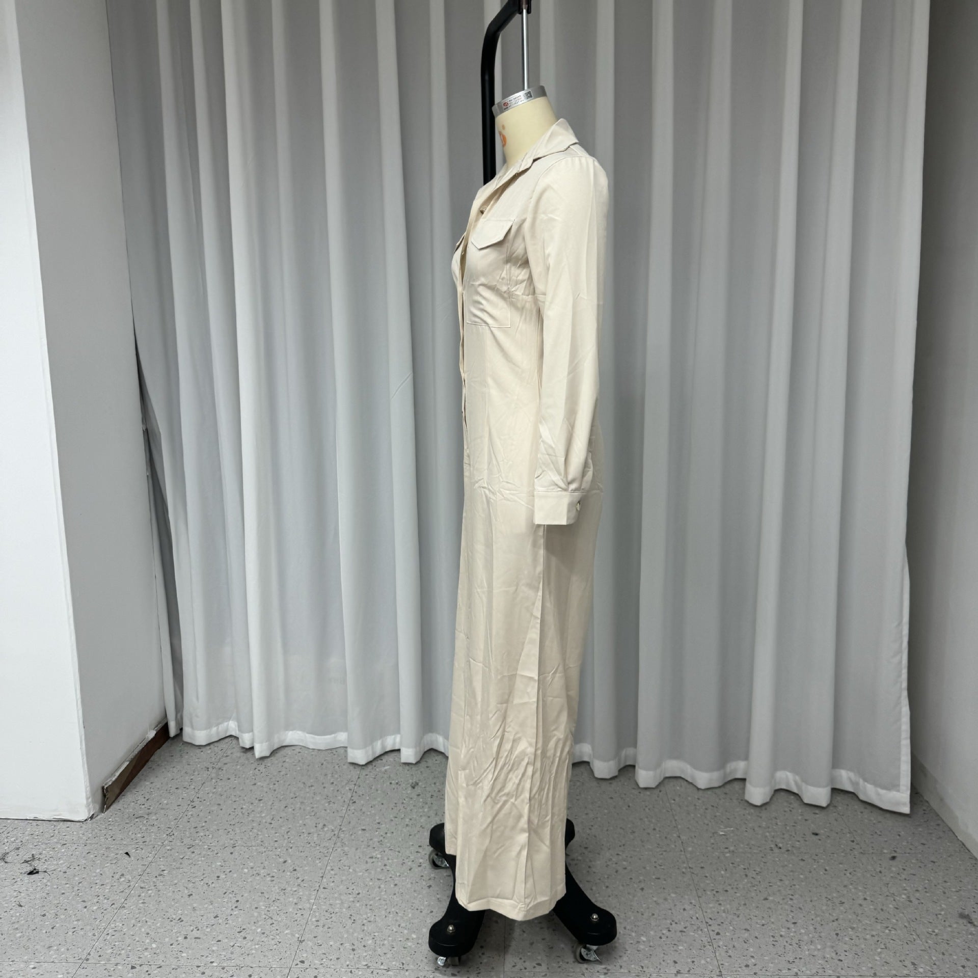 Women's Fashion Polo Collar Casual Solid Color Jumpsuit