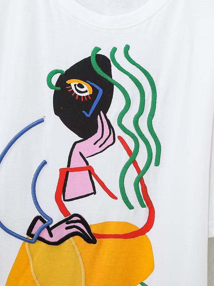 Women's Printing Color Contrast Round Neck Short Sleeve T-shirt