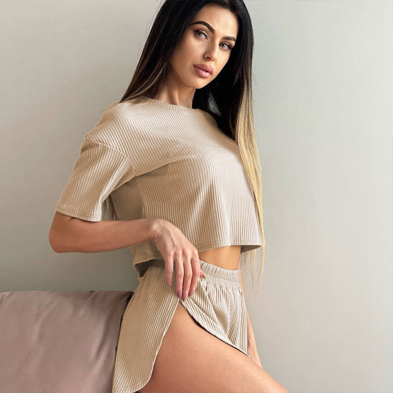 Women's Round Neck Midriff Outfit Short Sleeve Top